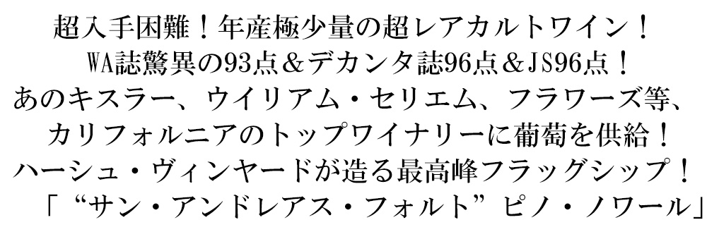 全米の有名レストランもこぞってオンリストし、あのオバマ大統領も行きつけのレストランで愛飲している、お気に入りのワイナリーという名門ハーシュ・ヴィンヤーズ