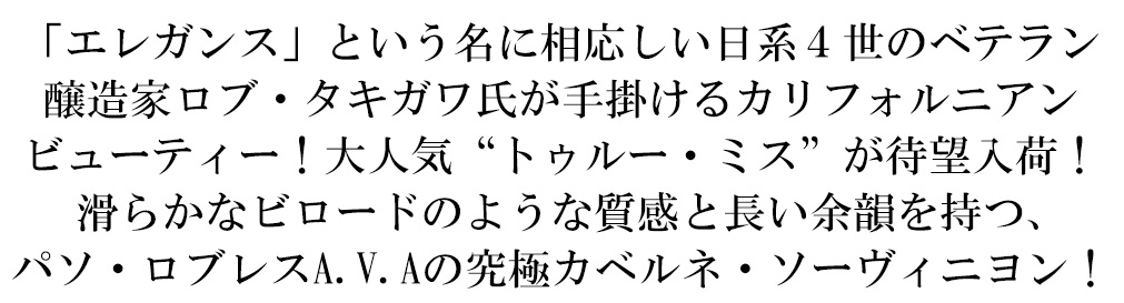 日系4世の匠ロブ・タキガワ氏渾身の究極カベルネ・ソーヴィニヨンが限定で少量入荷!