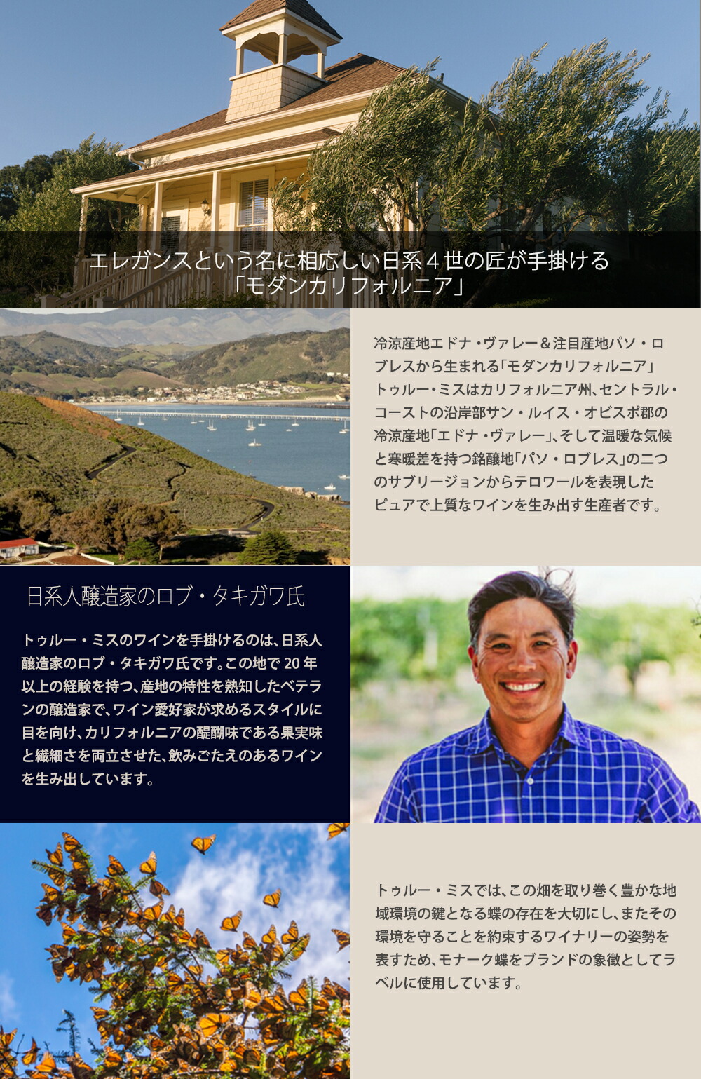 真の神話の意を意味するワイナリー名「トゥルー・ミス」。この名前には、自然の美しさと卓越性を讃える作り手の哲学が込められ、芸術と信念の力を重視し、自然や可能性、ワインの美しさを重んじる蔵の姿勢が現れています。