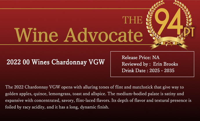 ワインアドヴォケイト誌驚異の94点獲得で大絶賛コメントは『火打ち石とマッチ棒の魅惑的な香りで始まり、黄金のリンゴ、マルメロ、レモングラス、トースト、オールスパイスの香りに変わります。ミディアムボディの口当たりは、凝縮された風味豊かな火打ち石の香りがする、滑らかで広がりのある味わいです。その深みのある風味と食感は、活発な酸味によって引き立てられ、長くダイナミックな余韻が続きます。飲み頃、2025 - 2035年 94点』と大注目!