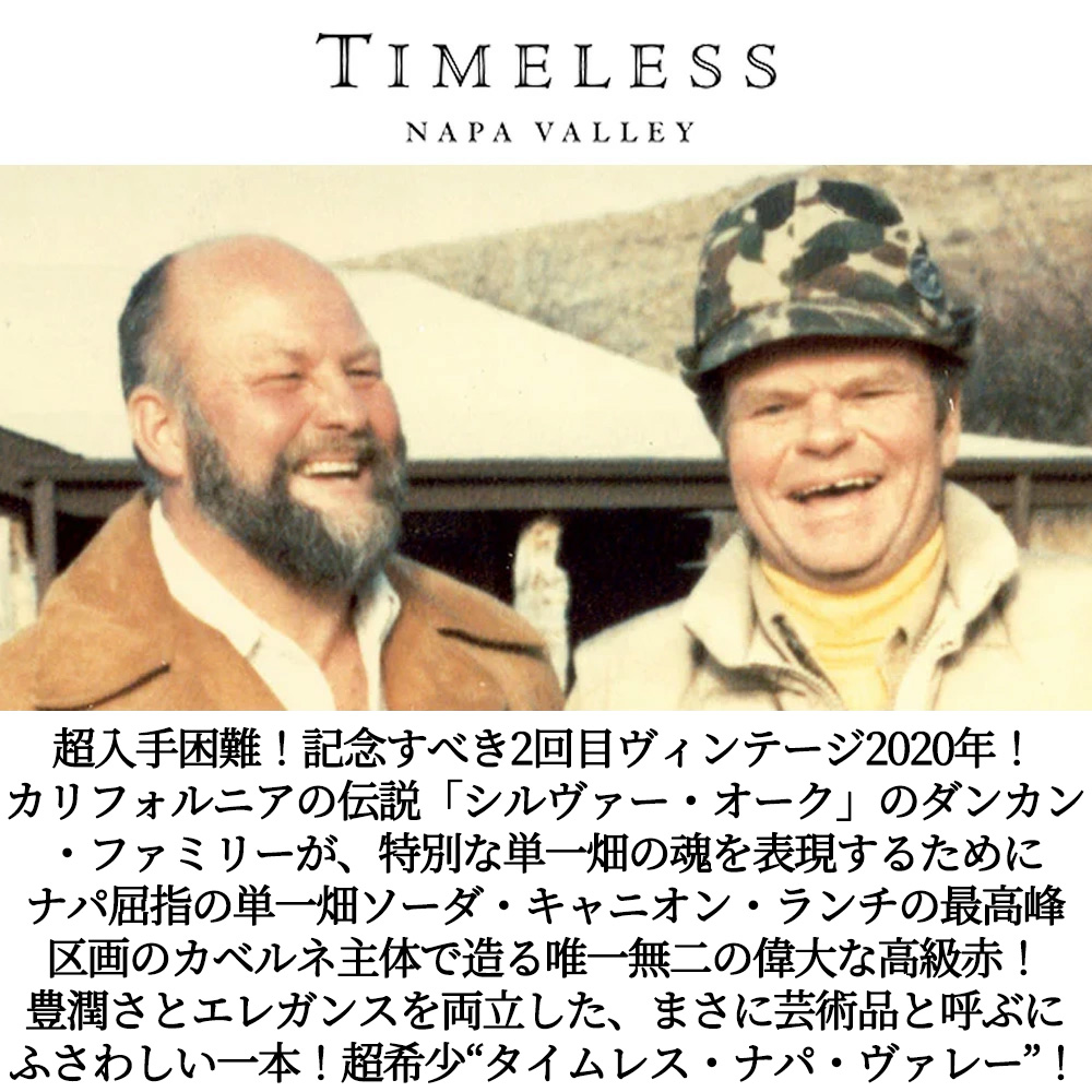 記念すべき2回目ヴィンテージ2020年ものの超希少タイムレス・ナパ・ヴァレーが正規品で待望入荷!