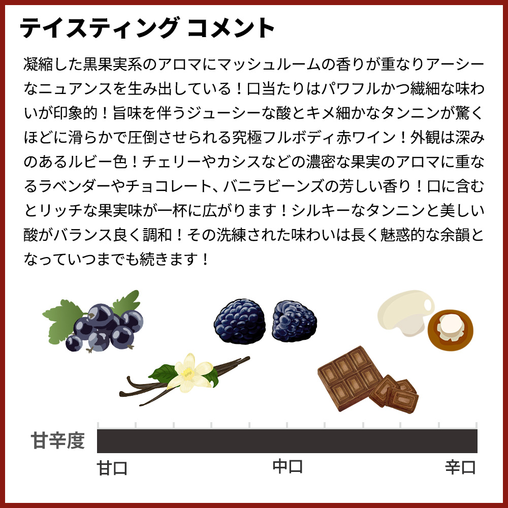 若いうちから美味しくいただけますが、熟成させるとよりエレガントな味わいをお愉しみいただける1本!