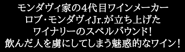 カリフォルニアのワイン造りの歴史や伝統を尊重し、特にプティット・シラーに力を注いでいます。“スペルバウンド(魔法にかかった)”のイメージに合わせた神秘的な月のラベルが印象的で、飲んだ人を虜にしてしまう魅惑的なワインです。 樽とステンレス・タンクで発酵。スタンレス・タンク、アメリカン・オーク、フレンチ・オークで熟成。発酵と熟成に樽を使用することで、力強さや凝縮感、複雑性が生まれ、フレッシュ・ヴァニラやクレーム・ブリュレのような風味が与えられます。活き活きとした酸を保つため、10%ほどステンレスタンクを使用します。鮮やかな色調、リッチなフレーバー、完璧なバランスを備えた溌剌としたシャルドネです。