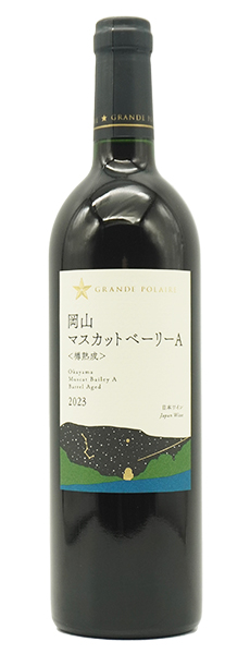 岡山マスカットベーリーA・樽熟成“グラン・ポレール”[2023]年・蔵出し品・プレミアムシリーズ・オーク樽5ヶ月熟成・岡山県井原市産100%マスカットベーリーA種100%・日本ワイン・赤・辛口 ■ 葡萄品種:マスカットベーリーA種 ■ 熟成:オーク樽5ヶ月熟成 ■ 合う料理:竜田揚げ、麻婆豆腐、焼き穴子 ■ 飲み頃温度:14~16℃ 岡山県井原市の協働契約栽培畑産の完熟したマスカットベーリーA種ぶどうをゆっくりと醸した後、やさしく果汁を搾り、木樽で熟成しました。 やわらかなブーケと果実味にあふれた、まろやかな味わいが特長です。 【メーカーコメント】 「古くからぶどう栽培で有名な岡山県井原市産のマスカットベーリーA種は岡山県産赤ワインの代表品種です。協働契約栽培畑(井原市ぶどう部会会長三宅憲治氏)でワイン醸造用に大切に育てているぶどうを厳選し、時間をかけて丁寧に醸した後、オーク樽で熟成(5ヶ月以上)させたワインは、柔らかなブーケとマスカットベーリーA種特有の果実味に溢れた、余韻のあるまろやかな味わいに仕上がっています。」
