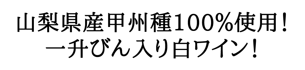 どうの新鮮さと果実香のある爽やかな辛口タイプのワイン!味わいは、丸みがありやわらかでバランスが良く調和し、全体的には軽快な印象があります!地元勝沼のぶどう生産者も愛飲するワインが一升瓶に入って登場!