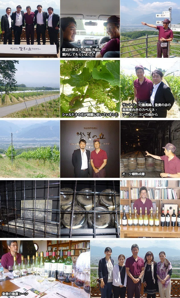 シンボルマークについて…ぶどうの房と葉のシルエットをモチーフに、日本の伝統的な意匠フォーマット「家紋」を象ったもので「一粒一粒に丹精こめて育てあげた“日本のぶどう”から、国境を越えて世界の人々を感動させるワインを目指す」という想いを込めています。