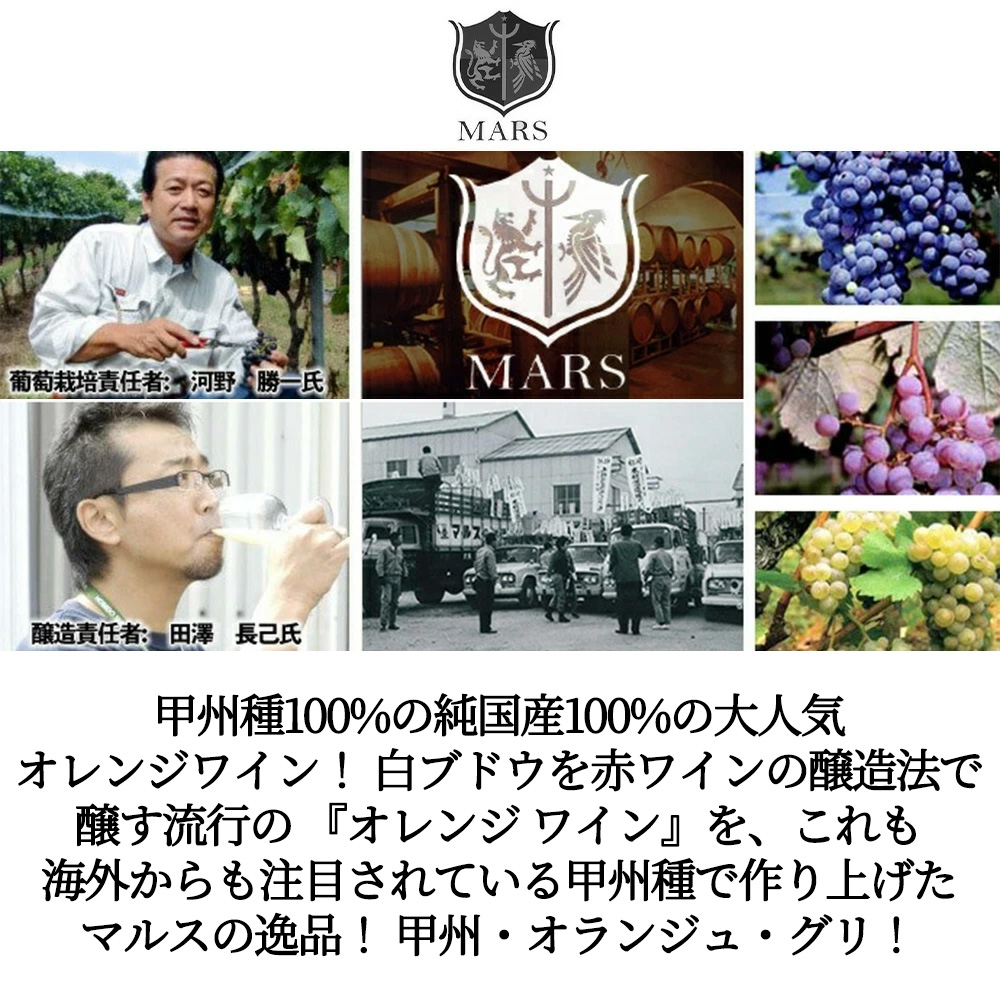 白ブドウを赤ワインの醸造法で醸す流行の『オレンジワイン』を、これも海外からも注目されている甲州種で作り上げたマルスワインの逸品!