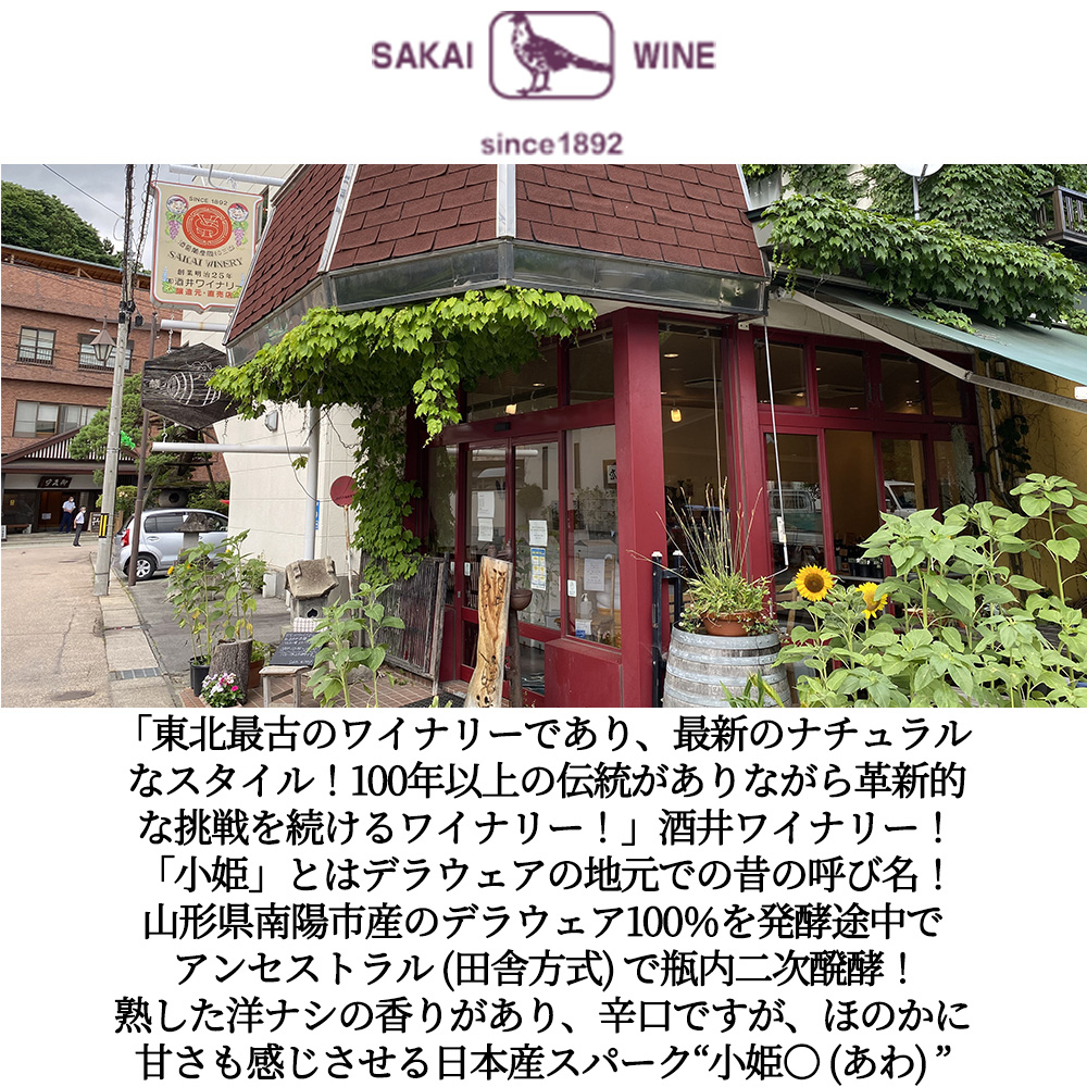 柔らかな泡立ちを楽しんでいただける日本産スパークリングワイン“小姫○(あわ)”が待望入荷!亜硫酸極少量の為、クール便での配送をお薦めします!