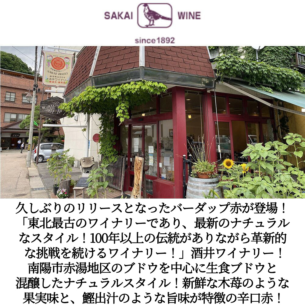 辛口赤ワイン愛好家大注目!年産わずか2500本のみ!リアルワインガイド×モトックスプレゼンツ!酒井ワイナリーの大人気ワイン!久しぶりのリリースとなったバーダップ赤が登場!