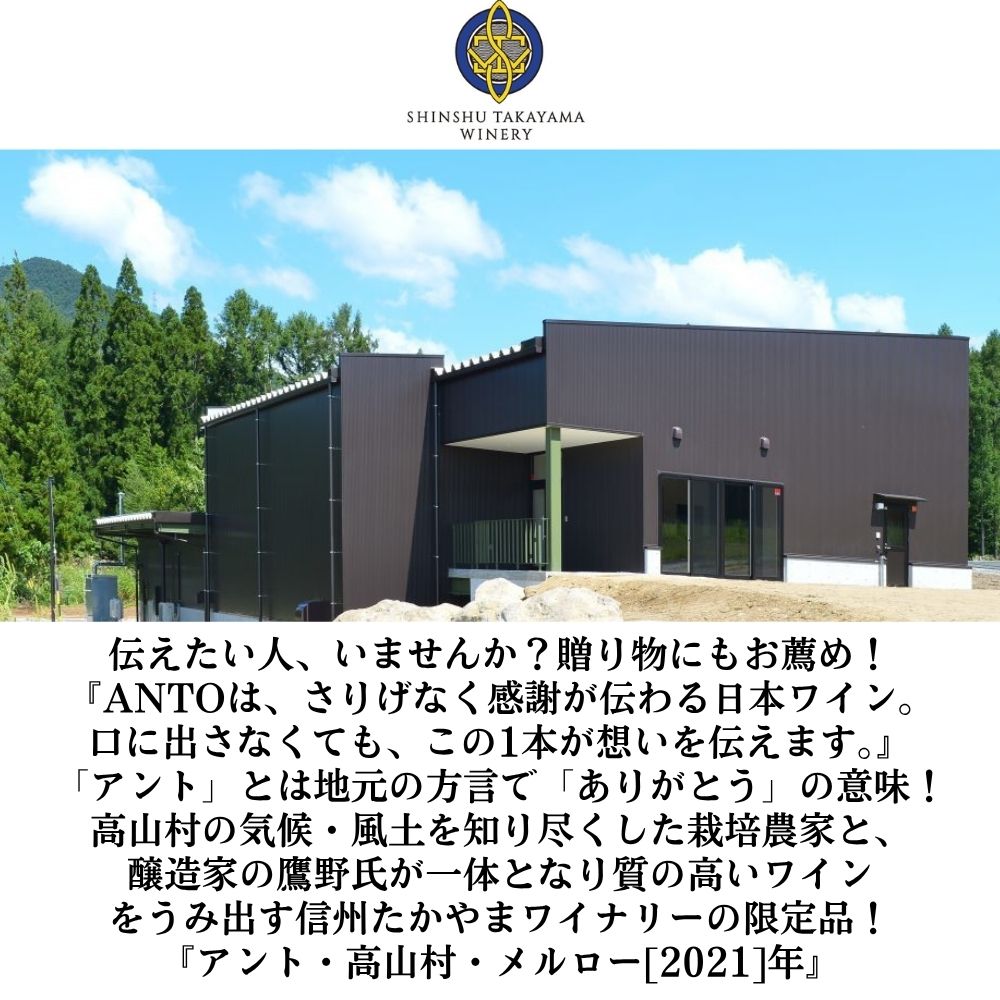 年産2750本の希少作品“アント・高山村・メルロー”が限定で待望入荷!贈り物にもお薦めの日本ワイン!「アント」とは地元の方言で「ありがとう」の意味。