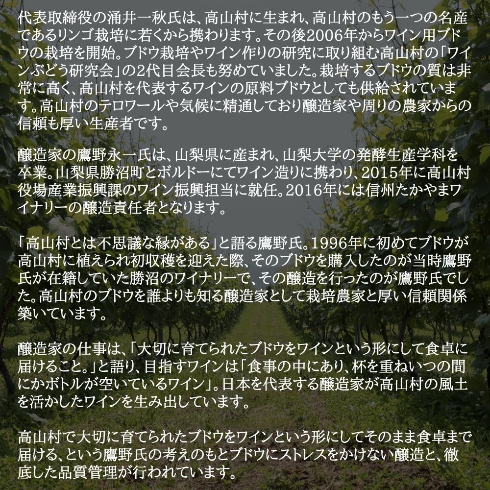 ワイナリーは「2021年のシーズンは早い春の訪れで幕を開け、その後の冷え込みは遅霜被害をもたらしました。梅雨が明ければ一気に連日の真夏日、そしてお盆には一転して急な冷え込み。目まぐるしく変わる季節を経て、秋には穏やかな好天に長く恵まれる年となりました。」とコメント。