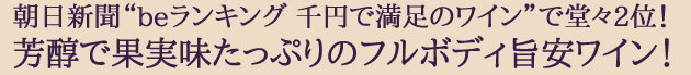 朝日新聞(2009年6月27日号)beランキングの「千円で満足のワイン」で見事第2位を獲得!「来年のサッカーW杯もあって今後注目されそうな南アの逸品」と絶賛!