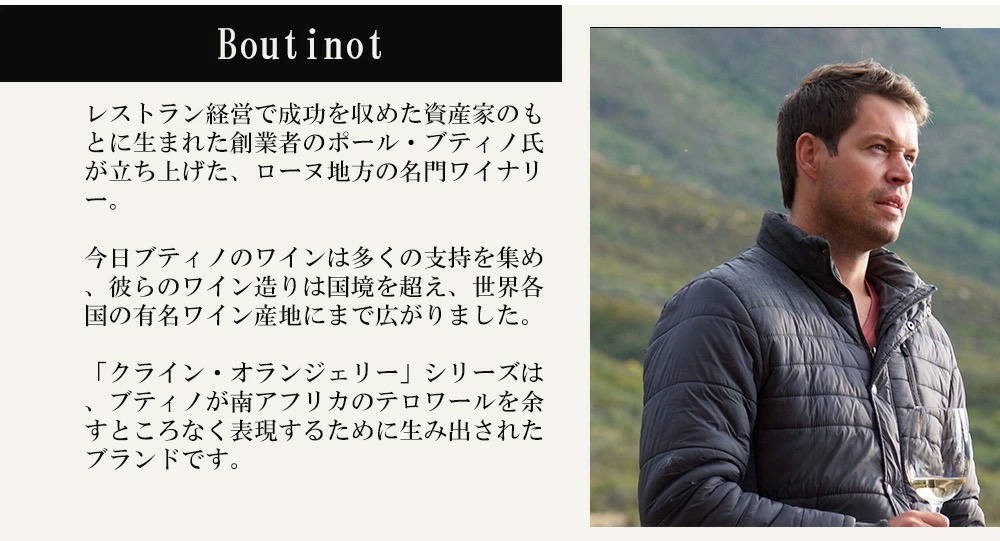 ヴィオニエ愛好家大注目!ローヌの名門ブティノが南アフリカのテロワールに魅了され生んだブランド!“クライン・オランジェリー”!