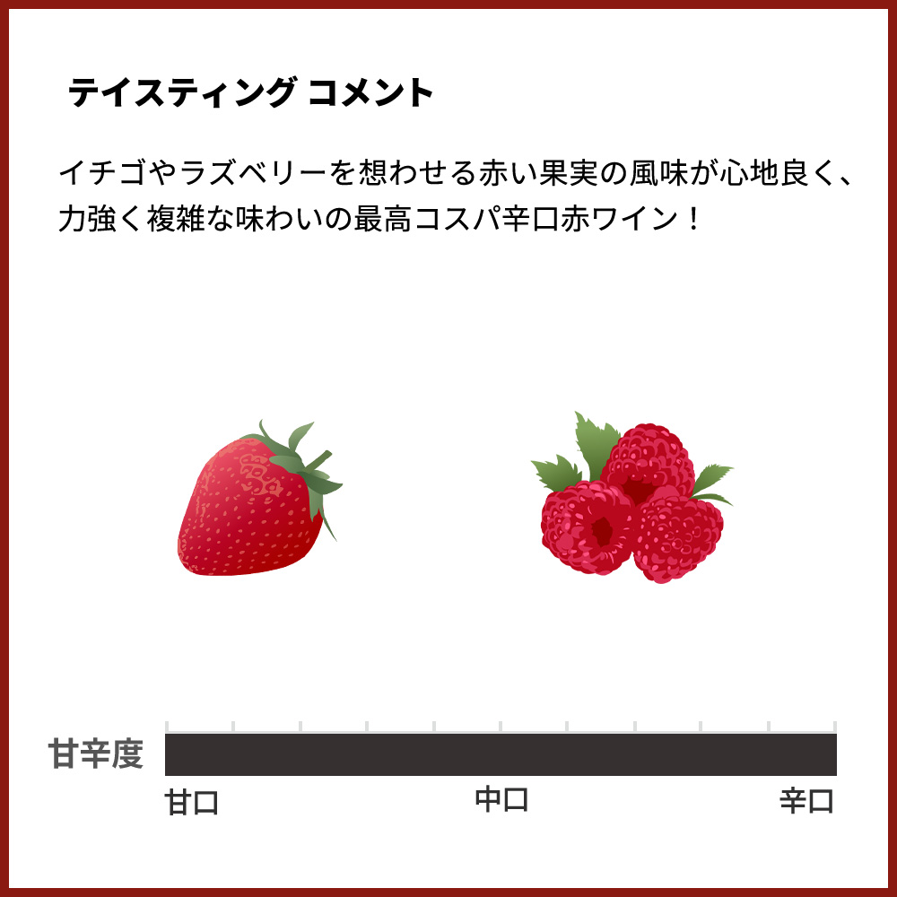 このオーカ・カベルネ・ソーヴィニヨン[2023]年は、サステナブル農法!厳選カベルネ・ソーヴィニヨン主体をステンレスタンク醗酵、その後、40%のみアメリカンオーク樽熟成12ヶ月 (300L 新樽比率15%) で造られる本格派辛口赤ワイン!イチゴやラズベリーを想わせる赤い果実の風味が心地良く、力強く複雑な味わいの最高コスパ辛口赤ワイン!