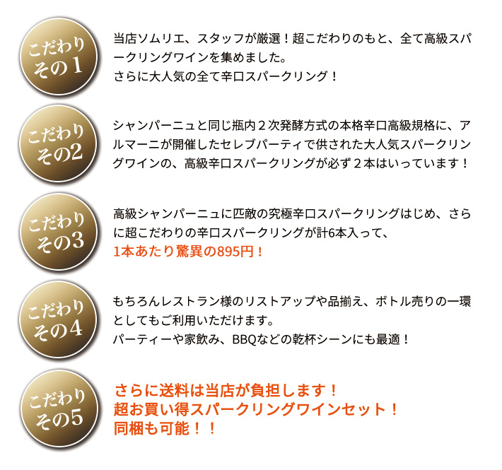 【送料無料】玉手箱厳選!すべて本格派の極上辛口泡6本セット ワインセット スパークリング