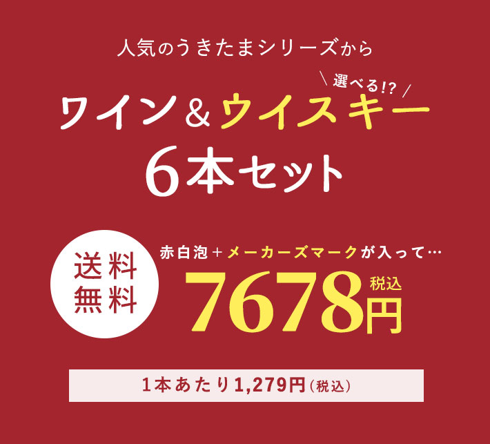 ワインセット 送料無料 うきたまシリーズ 赤ワイン 白ワイン スパークリングワイン + メーカーズマーク レッドトップ が入ったゴールデンハッピー6本セットB ( ワイン ウイスキー セット ギフト プレゼント )
