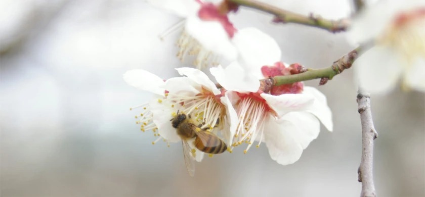 2月に白い花をつけた梅はミツバチなど自然のチカラによって実を結び、6月の梅雨の雨をいっぱいに吸ってその実をふくらませます。日の当たった部分が紅く色づくのが南高梅の特徴。果肉が厚く柔らかく、酸度も高いため梅酒や梅干しに適した最高級品種として知られています。
