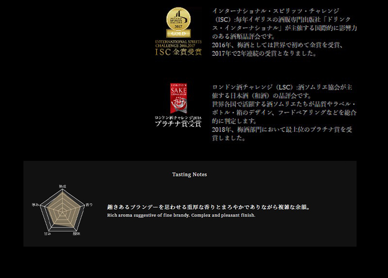 2016年・2017年 2年連続インターナショナル・スピリッツ・チャレンジ(ISC)金賞受賞。