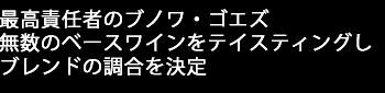 モエ・エ・シャンドンの醸造チームは年齢も、性別も多様性に富んだ15人。彼らのノウハウは1743年から受け継がれてきている。果実の本質を活かし本物のワイン造りにこだわるというのが信念。そのチームを率いるのが最高責任者のブノワ・ゴエズ。無数のベースワインをテイスティングし、ブレンドの調合を決定します。