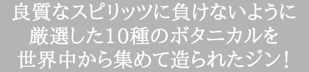 良質なスピリッツに負けないように厳選した10種のボタニカルを世界中から集めて造られているロンドンドライジン。現在流通しているジンの中でも特出してドライな味わいです。本当のドライマティーニに不可欠なジンをぜひ一度ご賞味ください。