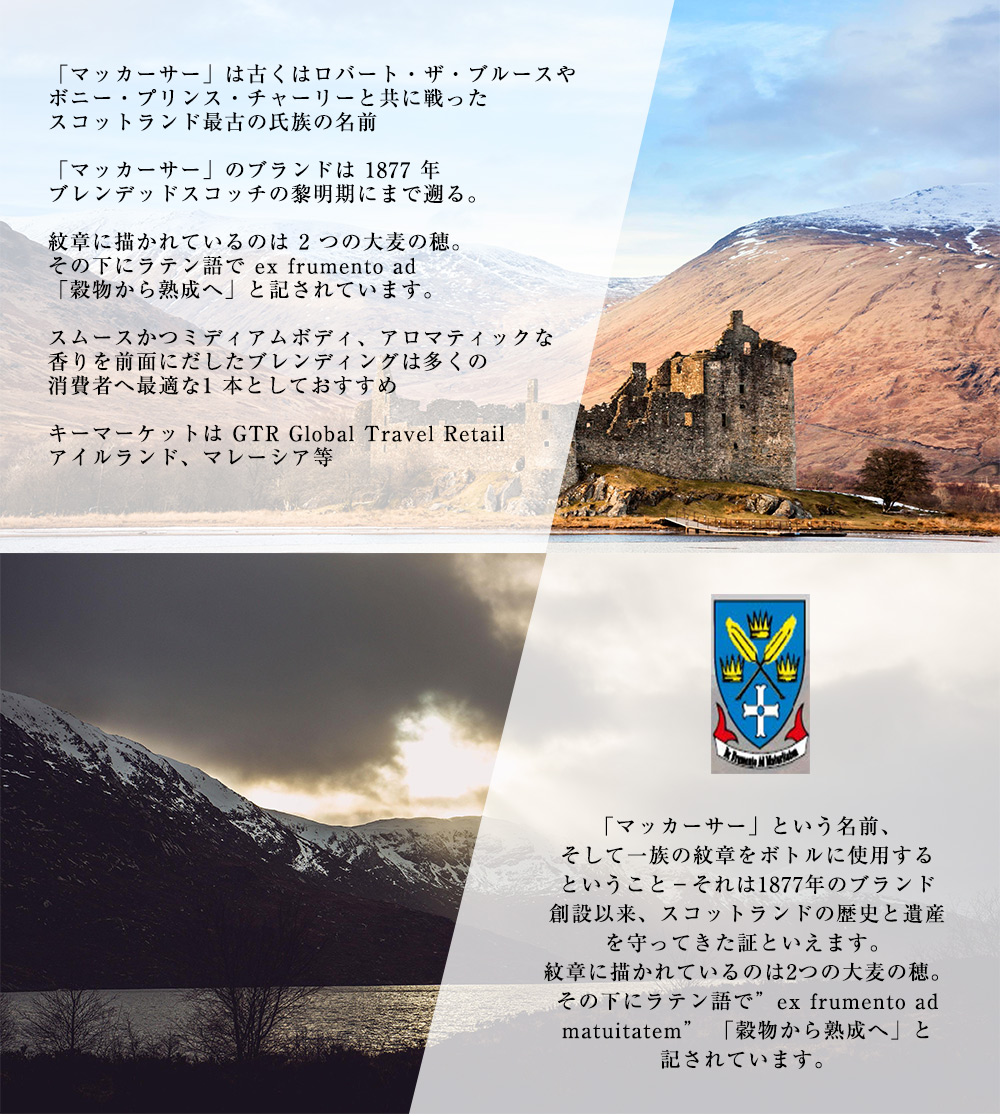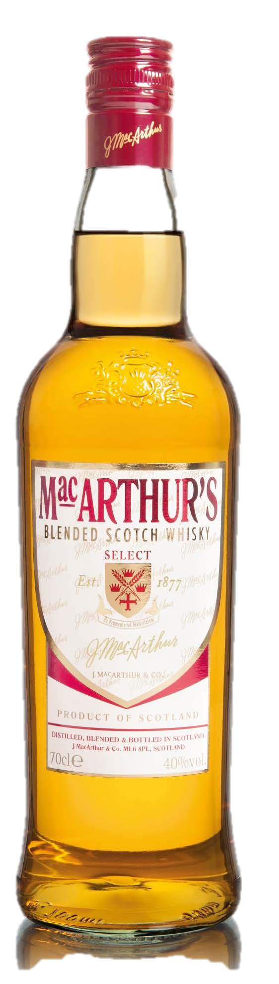 【正規品】マッカーサー ブレンデッド スコッチ ウイスキー インバーハウス社 ■アルコール度数:40% ■内容量:700ml スコットランドの中でも最も古く、尊敬の念を抱かれてきた氏族の一つであるクラン・マッカーサー(Clan MacAthur)は、ロバート・ザ・ブルース(ロバート1世)やボニー・プリンス・チャーリー(チャールズ3世)らと共に自由の為に戦った一族として有名です!!その一族の名を冠したウイスキーは、スコットランドの伝統と歴史を味わうに最適な1本!! マッカーサー ブレンデッド ウイスキーはオールドプルトニー、バルブレア等、世界的な評価を誇る蒸溜所を有するインバーハウス社のブレンデッドウィスキーで、ブレンデッドの黎明期1887年につくられた最も古いブレンデッドウィスキーの一つ!! リッチで透き通ったゴールド!!香り高い大麦麦芽、甘いシトラスのアフターノーズ!!軽やかで滑らかなトフィーとバニラの味わい!!フレッシュな甘みが長く続くスムースかつミディアムボディ、アロマティックな香りを前面にだしたブレンデッドウイスキー!!ハイボールにおすすめです!!