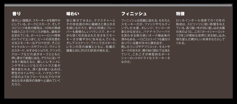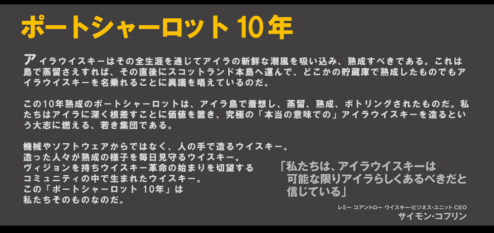 40PPMのパワフルなヘビーピート!!ブランド歴史上初となる年数表記をした定番商品!!ポートシャーロット10年!!