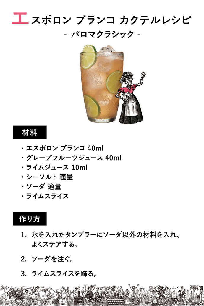 エスポロンのユニークなパッケージは、伝説的なアーティスト、ホセ・ グアダルーペ・ポサダに敬意を表して描かれており、メキシコでは死と生まれ変わりの象徴であるカラベラ(スカル)と国民の誇りを象徴する雄鶏をモチーフにしたデザインで表現されています!!