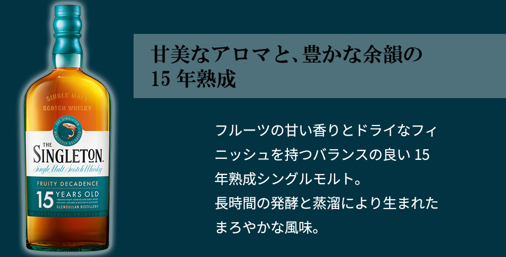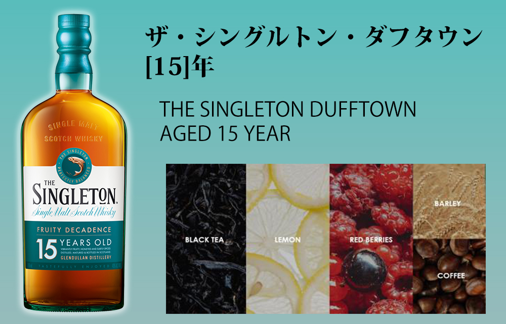 シェリー樽とバーボン樽の原酒をヴァッティングさせており、スペイサイドらしいなめらかでフルーティーな甘みのある味わいが特徴!!ザ シングルトン ダフタウン 15年!!はフルーツの甘い香りとドライなフィニッシュを持つバランスの良い15年熟成シングルモルト!!