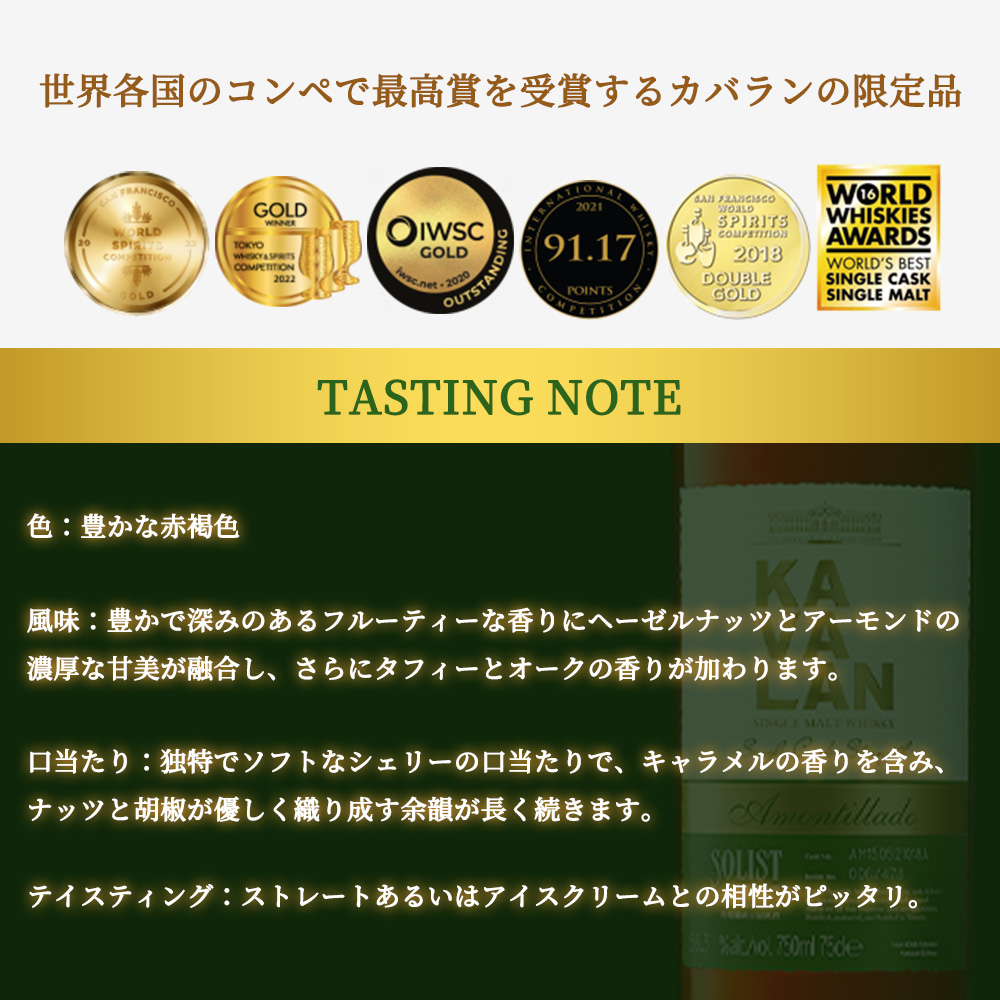 | ■商品名 | 【送料無料】【正規品・箱入】カバラン・ソリスト・アモンティリャード・シェリーカスク・カスクストレングス・台湾ウイスキー・金車・700ml・50-59.9% |