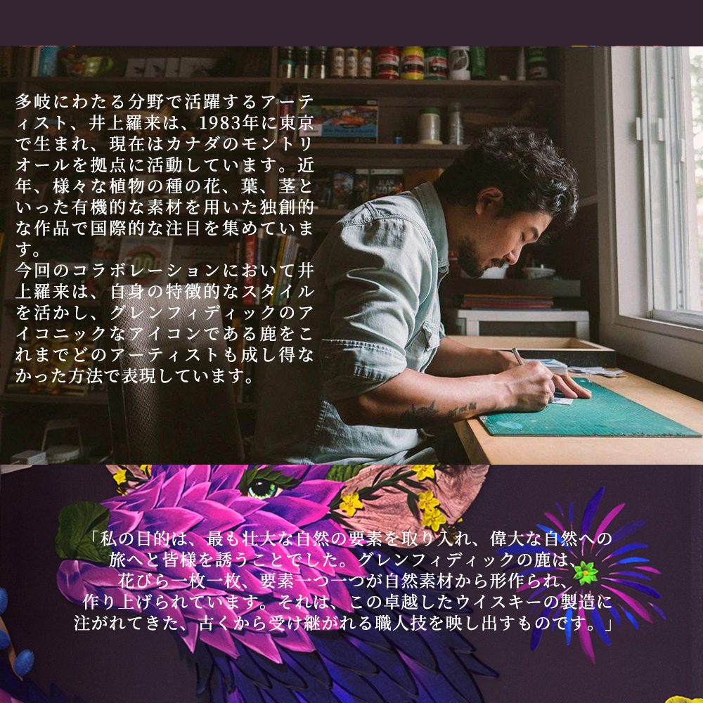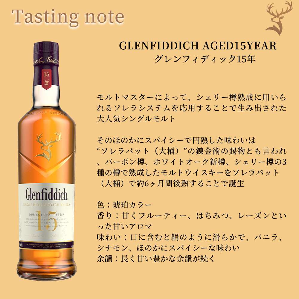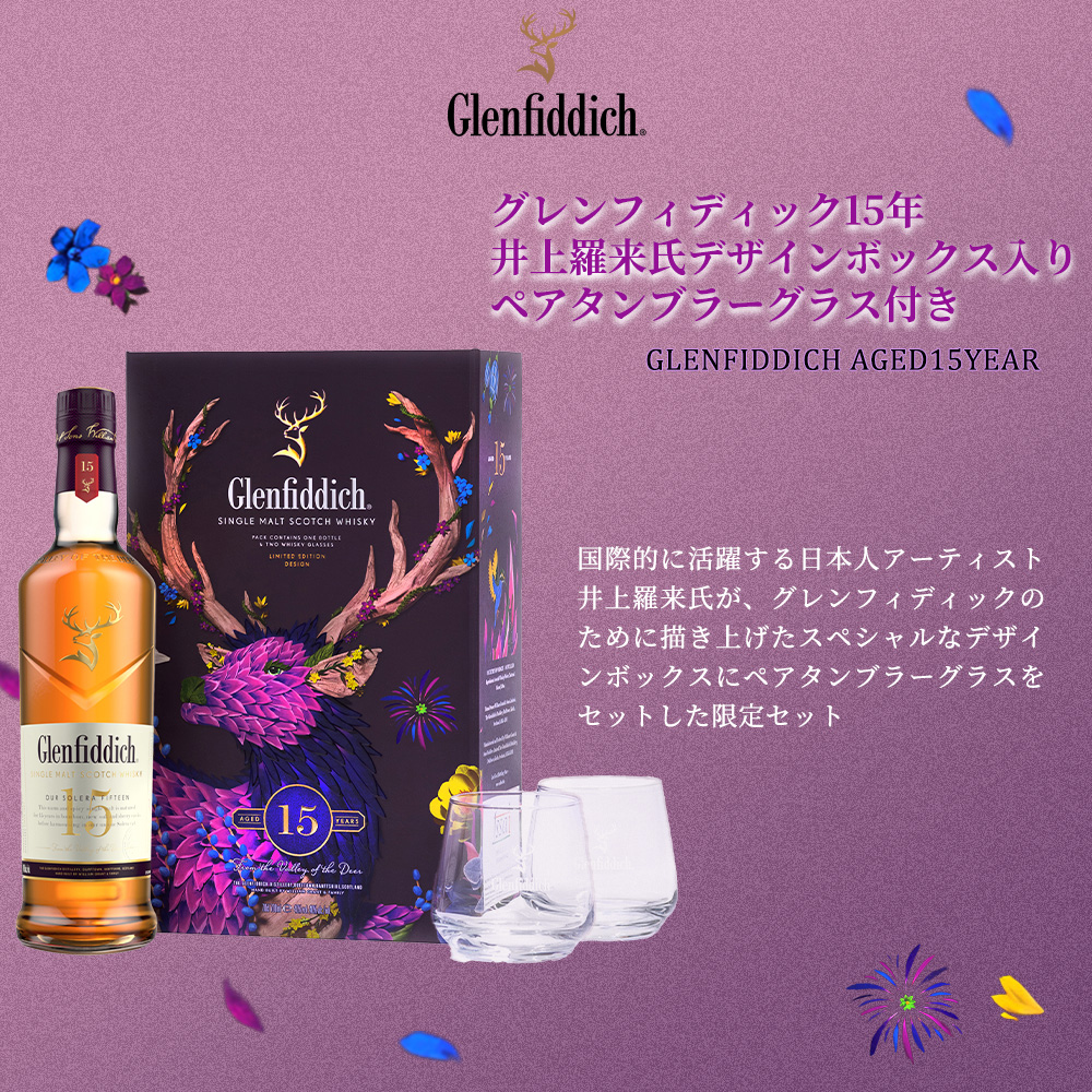 華やかでライトな味わいのシングルモルト“グレンフィディック”は、初溜釜が4.6キロリットル、再溜釜が9.1キロリットルと手間も暇もかかる小さな直火型ポットスチルを採用。年季を積んだスチルマンの技で丁寧に蒸留しています。熟成樽はバーボン樽やシェリー樽を基本に樽材の種類や使用回数、内面処理の違いを駆使し、さまざまな味わいのモルト原酒に分類します。蒸留・貯蔵・瓶詰めをすべて蒸留所内で行うためシャトーモルトと呼ばれ、この理想のウイスキーづくりから、現在180ヵ国に輸出されているシングルモルトは生まれています。