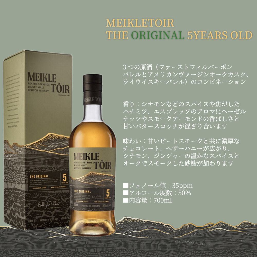 | ■英名 | MEIKLETOIR THE ORIGINAL 5YEARS OLD PEATED SPEYSIDE SINGLE MALT SCOTCH WHISKY 700ml 50% |
