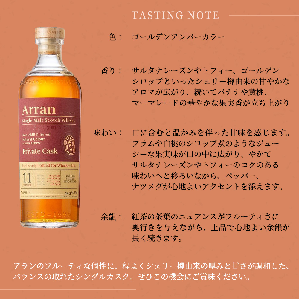 | ■英名 | ARRAN DISTILLED2013 AGED11YEAR 2nd FILL SHERRY HOGSHEAD SINGLE CASK SINGLE MALT SCOTCH WHISKY NONCHILLFILTERED NATURALCOLOUR 700ml 59.5% |
