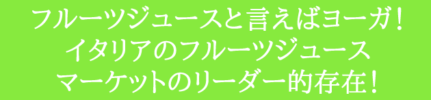 イタリアのフルーツジュースマーケットのリーダー的存在である“ヨーガ”。60年以上の歴史を誇り、高品質な製品作りと革新的なマーケティングでイタリアで高い認知度を得ています。
