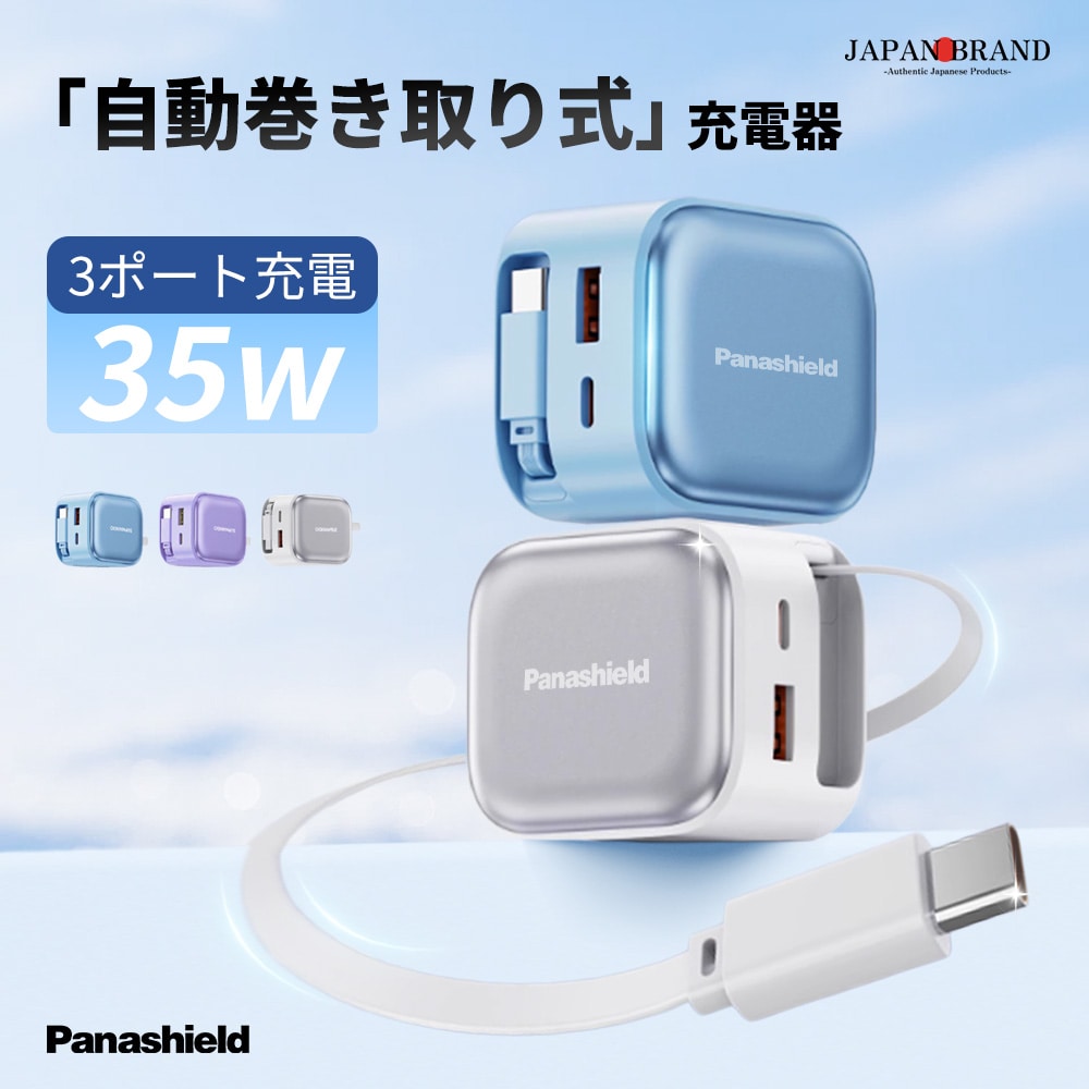 ★2026年最新モデル★iPhone17 充電器 35W 急速充電 type-c usb pd 充電器 iphone16 ノートパソコン充電器 スマートウォッチ スマホ充電器 ACアダプター ケーブル 巻き取り式 折り畳み式 充電ケーブル付き コンセント 3ポート装備 アイホン充電器