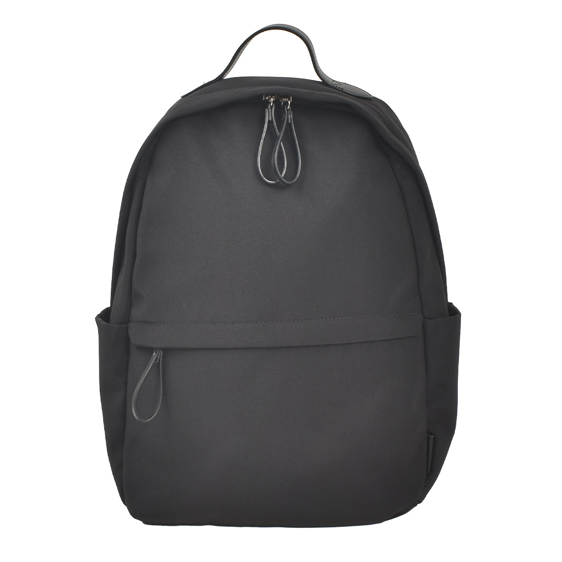 撥水生地の10ポケットリュック。引き手、タグを全て黒で統一し、あえて金具感を極力なくしたナチュラルな仕上がり。ファスナー引き手も引きやすくこだわられた形。どんな服装にも合いやすく、ラクを追求したリュックサックです。雨の日でもお手入れ楽ちんな撥水加工。毎日の通勤・通学にもおすすめです。内側にはドリンクポケット、PCポケットがあります。上部のポケットはスマホにちょうどいい小ぶりなサイズで、リュックを前に抱えている時に簡単にスマホを収納できます。背面はテープ付きでキャリーオン機能あり。