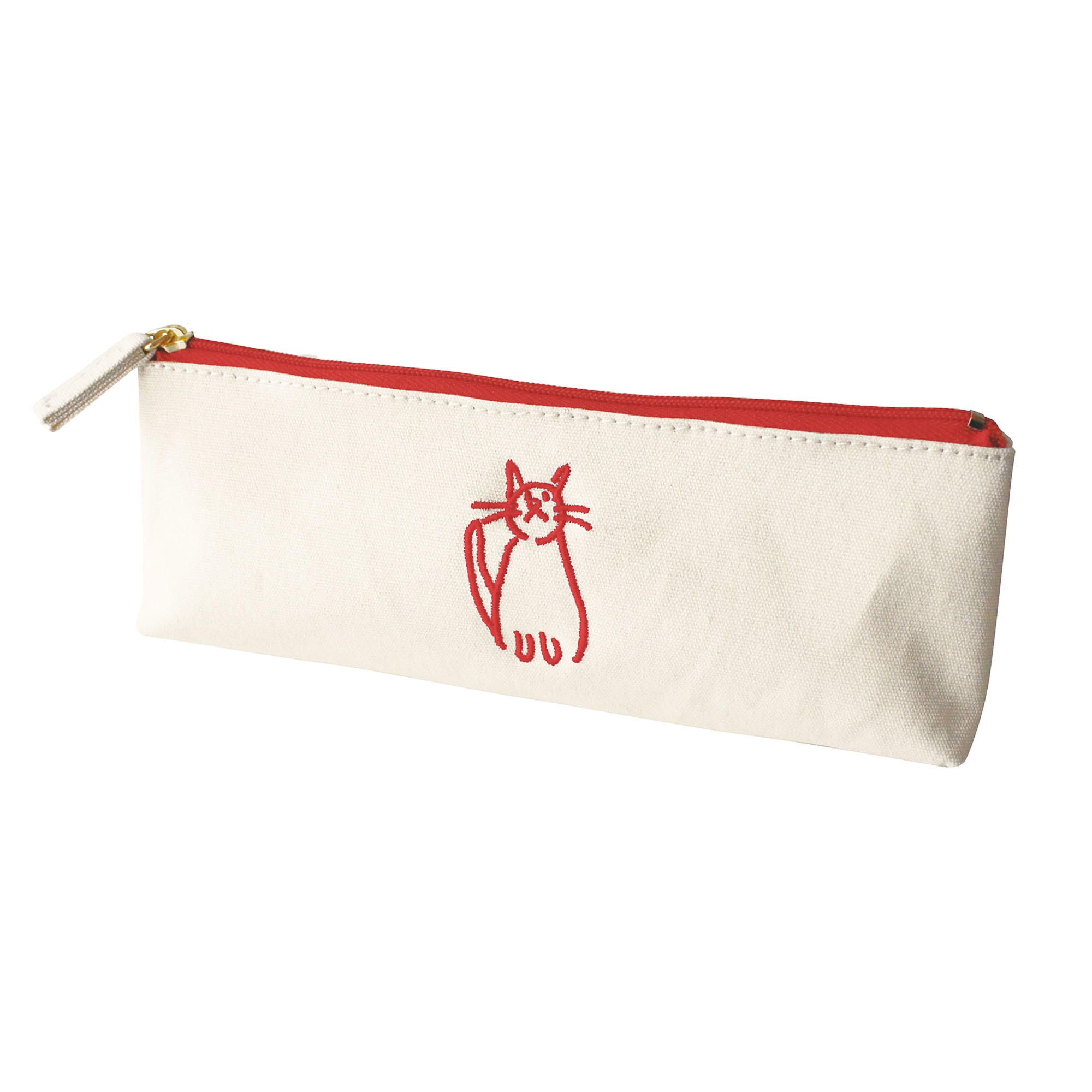 帆布の生地のシンプルで使いやすい形のペンケース。ゆるいタッチのデザインがポイント!マチがあるのでたくさん入れられます。内側は汚れに強いラミネートコーティング加工です。