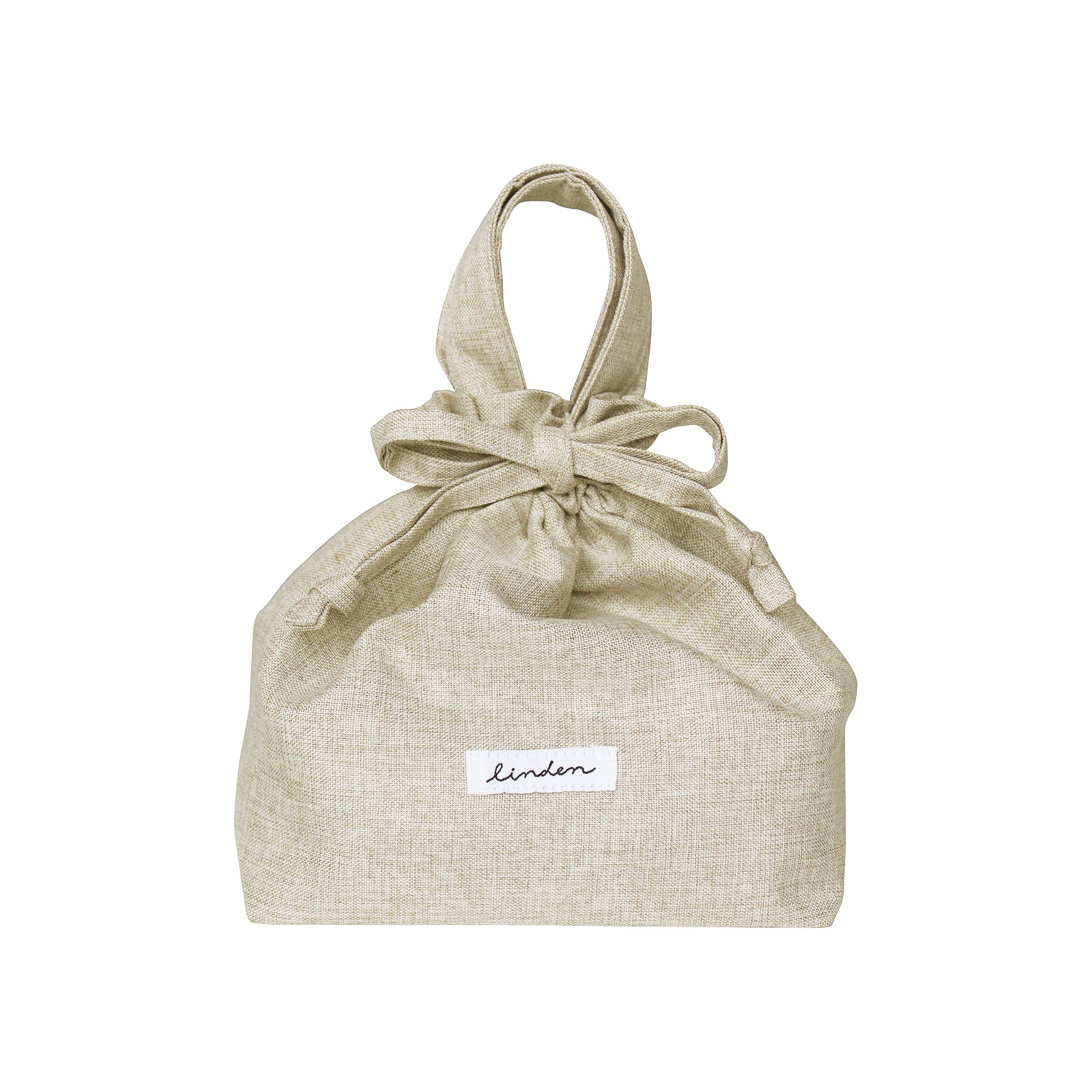 リネン風の生地感と色合いがかわいい巾着袋。お弁当箱を入れるのに最適なサイズです。