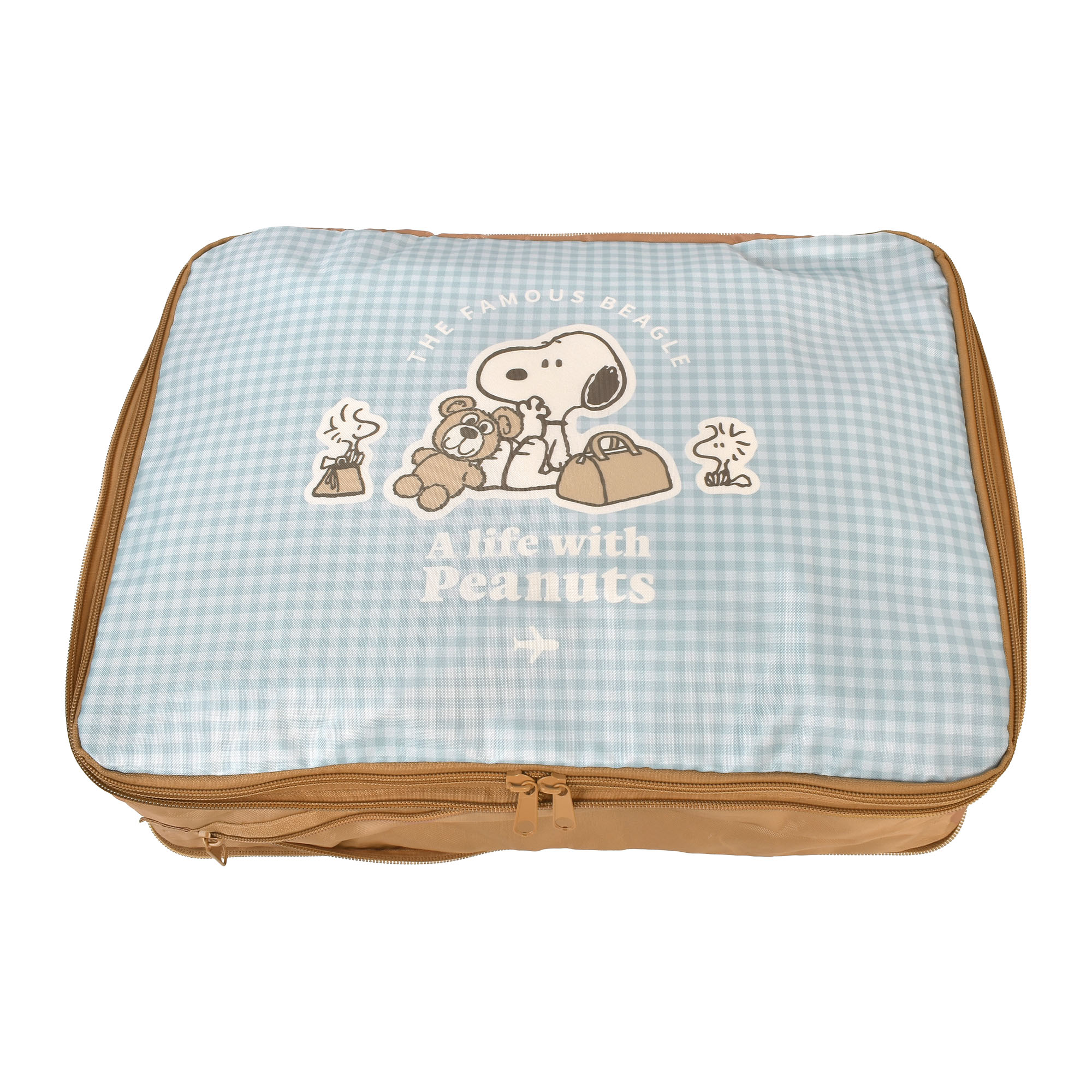 ファスナーを閉めるだけでかさばる旅行の荷物をスッキリコンパクトに収納できるスヌーピーの圧縮トラベルポーチ。道具が必要ないので旅先でも手軽に使えて便利です♪キャリーバッグの整理やおみやげのスペース確保など、旅行時のパッキングのお悩みを解決!洋服はもちろんかさばるタオルやインナー類の収納にもぴったり!旅行はもちろんお家の洋服収納アイテムとしても使えます◎