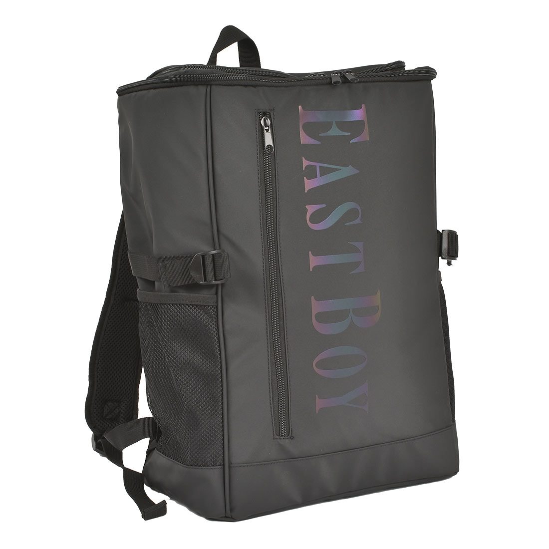 オーロラカラーロゴがおしゃれなイーストボーイの大容量ボックスリュック。
