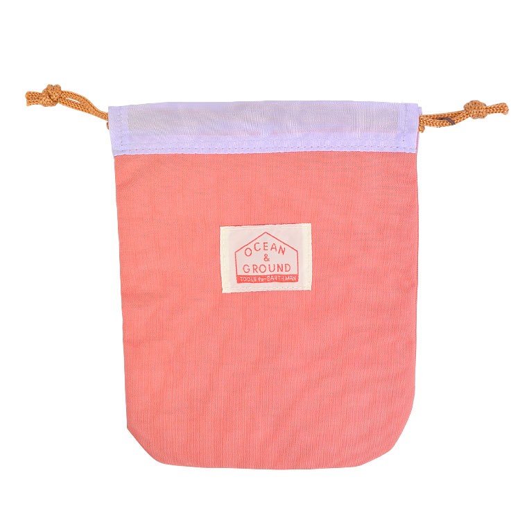 人気のocean&groundからポップなカラーの巾着袋が登場!! お子様の通学グッズとして、ママのポーチとして使い方いろいろ!旅行の時もあると便利。豊富なカラー展開で、家族や友達とお揃いも◎ 汚れてもさっと拭けるよう、丈夫で水にも強いナイロン100%素材を採用。 一見色ムラ?のように見えるものは、風合いを出すため染色後ウォッシュをかけた、ウォッシュナイロンという加工です。ふんわりとしたマーブルのような色がとっても可愛い!