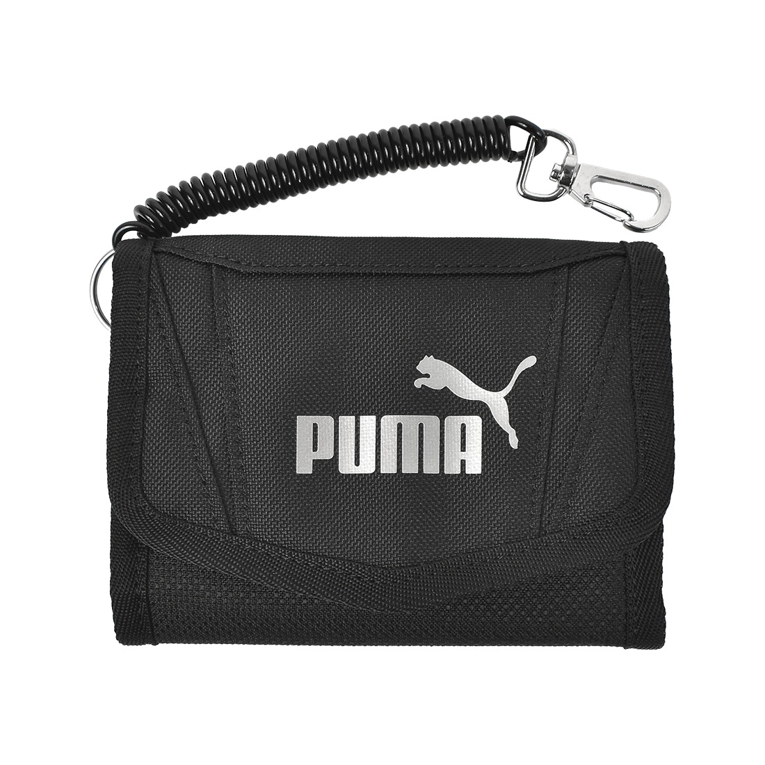 財布 PUMA プーマ ジュニア 男の子 キッズ 小学生 中学生 サイフ 三つ折り カールコード コイルチェーン付き パスケース 定期入れ 面ファスナー 子供 男子 通学 ウォレット サイフ 小銭入れ カードポケット かっこいい シンプル 黒 ブラック ネイビー 紺 入学準備 新学期