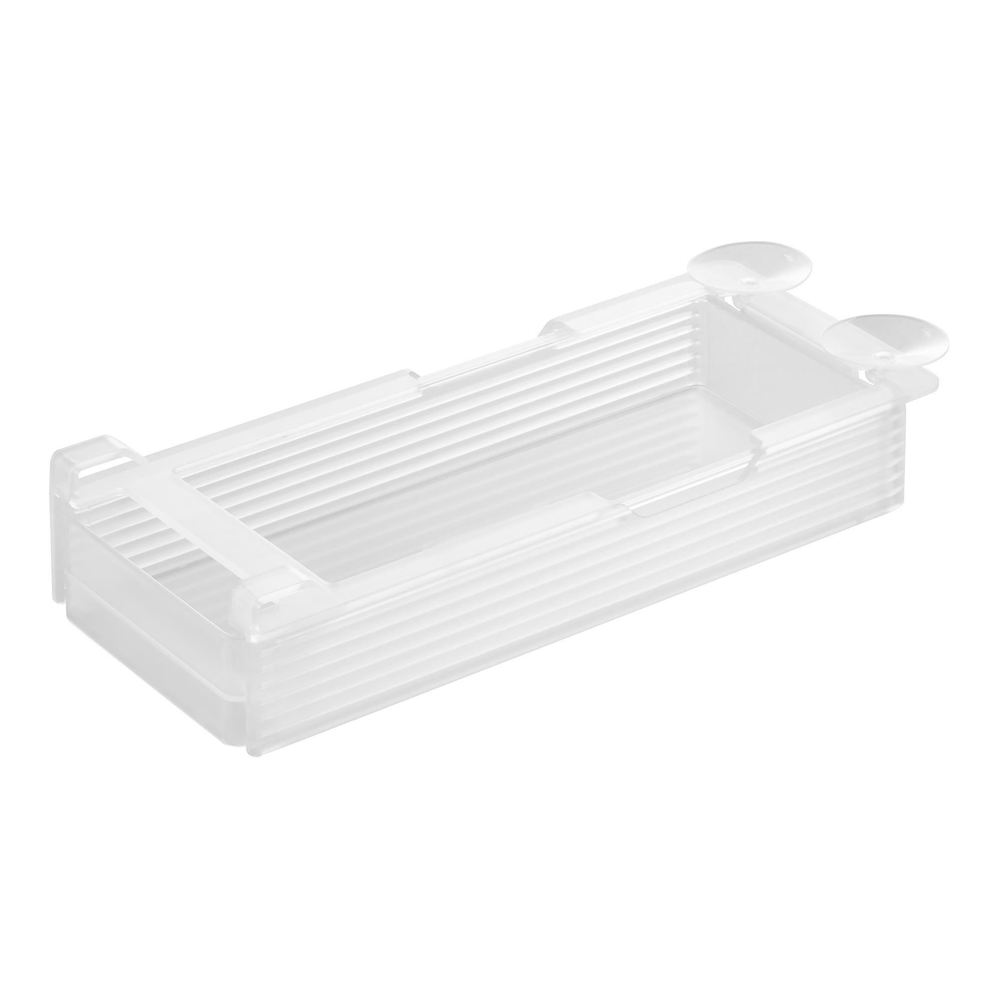 収納する物や隙間に合わせて高さを7段階に調節できる棚下収納ラックです。サイズはSとLの2サイズ展開。棚の奥まで無駄なく使えるロングタイプ。スライド棚の接続部があっても取り付け可能です。設置は、引っ掛け部を棚板に差し込み、吸盤で固定するだけの簡単仕様。引っ掛け部が短いので、棚板上も有効に使えます。幅11cmの「冷蔵庫中シリーズ(別売)」がピッタリ収まる設計で、空間を有効活用できます。引き出しは落下防止構造なので、安心して使用可能。スライスチーズやハムなど高さの低い食品から、ヨーグルトやゼリーなど高さのある食品まで、収納する物に合わせて高さを調節できるので、冷蔵庫の中をスッキリ整理整頓できます。