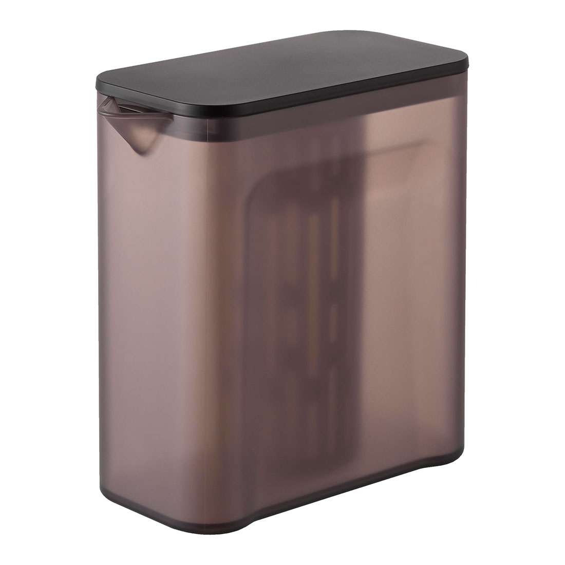 冷蔵庫の下段に収まるサイズで、茶葉をそのまま入れられるメッシュ製フィルター付きの冷水筒です。茶葉やお出汁を水出しする際、フィルターが底まで届くので少量の水でも抽出することができます。水出し後は、蓋側面のくぼみを容器の縁に引っ掛けることができるので最後の一滴まで注ぎきることができます。手が小さめの方でもしっかりと持ちやすい形状。開口部が広いので洗いやすく、食器洗い乾燥機で洗うこともできます。ドアポケットにも収納可能。冷水専用。食洗機OK。