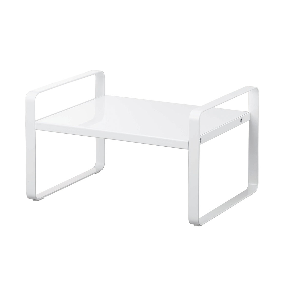 用途に合わせて横幅の調節ができる、towerの伸縮収納ラック2段。上下2段で使えてスペースの有効活用が叶います。キッチンカウンターや食器棚、パントリーの中などに置いて、食器やキッチン小物を整理するのにぴったり。耐荷重は約5kgあるので電気ケトルやコーヒーメーカーの収納にも使えます。