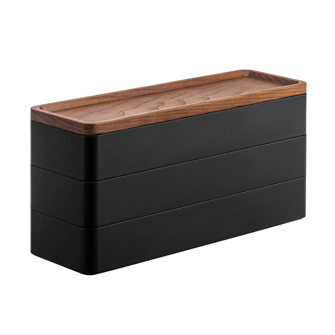 山崎実業 トレー付きスリムアクセサリーケース3段 リン RIN 5810 5811 ブラウン ナチュラル アクセサリートレイ アクセサリー収納 収納雑貨 小物入れ 一時置き トレイ ジュエリー ボックス 仕切り付き 指輪 ピアス おしゃれ 木目 木製 天然木 ウッド 北欧 シンプル 黒 白