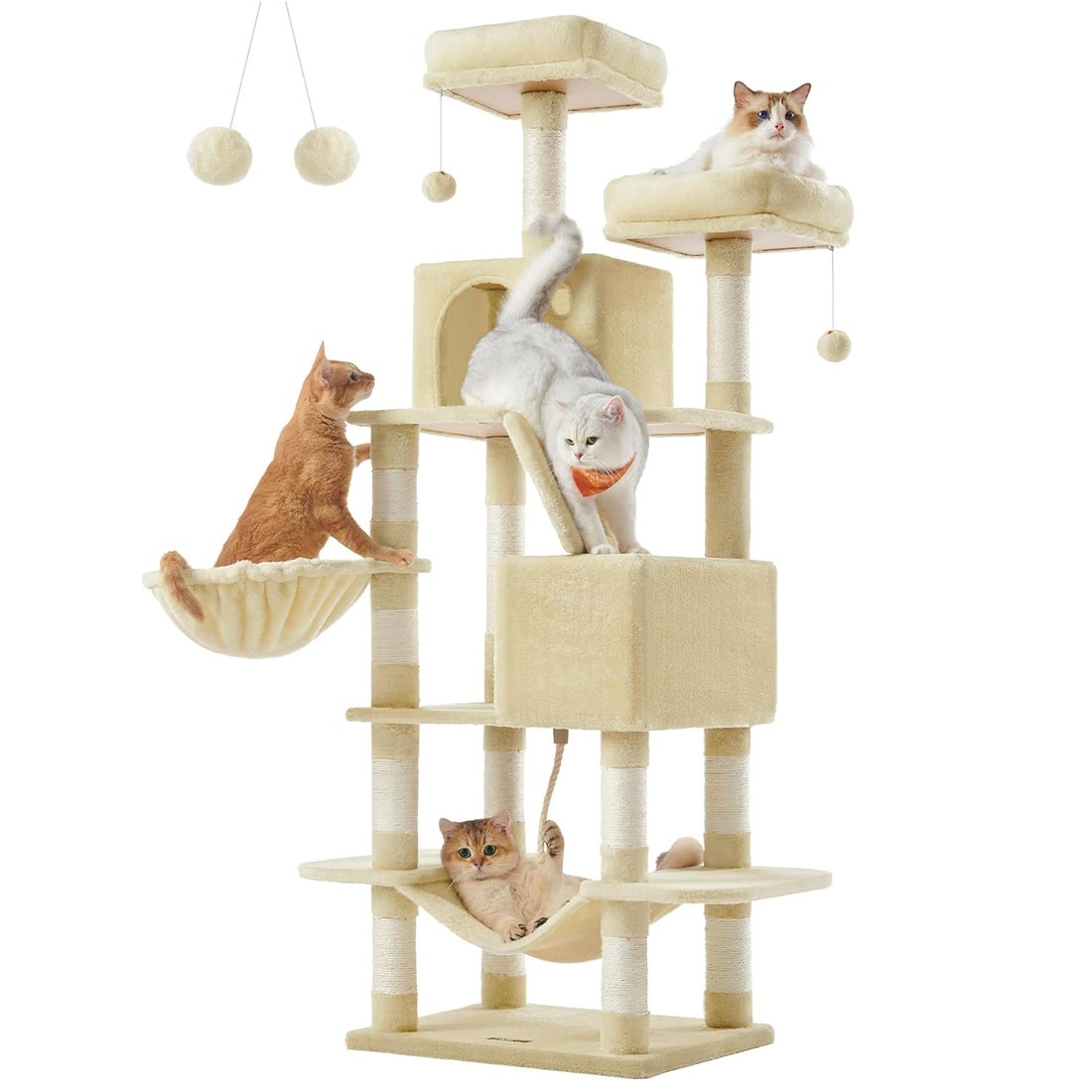 キャットタワー おしゃれ 据え置き 猫タワー 大型猫 スリム ハンモック 多頭飼い 高さ168cm 1.6m 大型 シニア猫 5kgまで 宇宙船 安定 FEANDREA 省スペース かっこいい グレー ベージュ ホワイト 白 転倒防止 キャットハウス 爪とぎ 研ぎ スロープ ベッド 運動不足解消