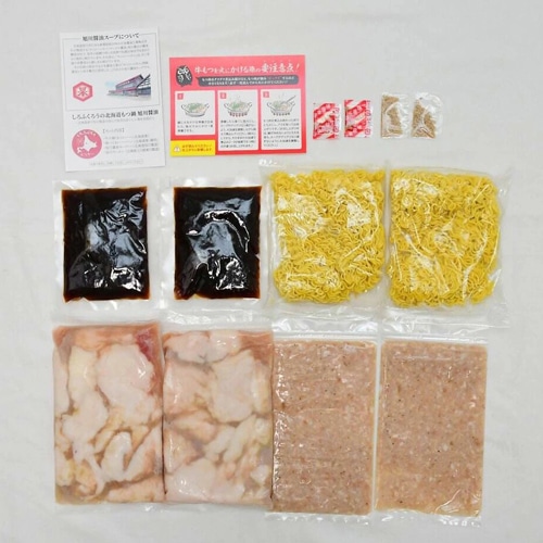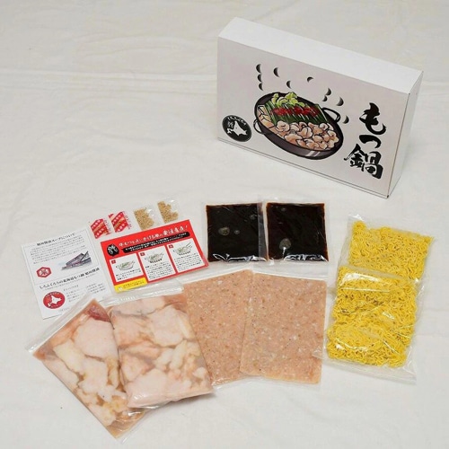 厳選された北海道産牛小腸100%、つくねは道産鶏肉と国産豚肉で歯ごたえのある鶏軟骨を入れ、味の決め手のスープには旭川醤油と呼ばれる醤油を使用。道産牛小腸の旨味、つくねから染み出る出汁と地元旭川の老舗醤油がお鍋を更に美味しくします。 鍋の〆には大雪山の伏流水を使ってつくられる北海道三大ラーメンのひとつ旭川ラーメンをお楽しみください。 ・便利な個食 セット内容は使い勝手を考え「2人前×2食入」となっております。 2人前が多いなと思われても、回数を分けてお食事いただけますので様々なシーンでご利用いただける便利な商品です。 ・お手軽簡単 作り方は簡単で、野菜(キャベツ・ニラ・お好みの野菜)、豆腐、お好みで薬味(にんにくスライス、輪切り唐辛子)などをご用意していただき、カットしておくだけで誰でもお手軽で簡単に自慢のもつ鍋を作ることが出来きます。 ■原材料名:【牛小腸カット】牛内臓(北海道産)【SAKツクネベース】鶏モモ肉(北海道産)、豚肉、卵、ヤゲン軟骨、ソテーオニオン、塩、片栗粉、かつおだし、おろししょうが、こいくちしょうゆ、ブラックペッパー/調味料(アミノ酸等)、酒精、乳酸、増粘剤(キサンタンガム)、酸化防止剤(V.C)、pH調整剤、(一部に小麦・卵・大豆・鶏肉・豚肉を含む)【鍋つゆ】しょうゆ(北海道旭川製造、本醸造)、濃縮つゆ(北海道旭川製造)、昆布エキス、中華スープ、おろしにんにく、岩塩、XO醤/調味料(アミノ酸等)、酸味料、甘味料(甘草)、(一部に乳成分・小麦・えび・牛肉・ごま・さば・大豆・鶏肉・ゼラチン・豚肉を含む)【冷凍食品 中華めん】小麦粉、(国内製造)、小麦たん白、食塩、卵白/プロピレングリコール、かんすい、着色料(ビタミンB2)、(一部に小麦・卵を含む)【ごま】いりごま(国内製造)【一味唐辛子】唐辛子 ■内容量:牛小腸カット200g×2P、ラーメン145g×2P、鍋つゆ(濃縮タイプ)115g×2P、軟骨入ツクネ75g×2P、ごま1g×2P、一味唐辛子0.2g×2P ■栄養成分表示(推定値) 【牛小腸カット】(100g当たり) エネルギー:268kcal、たんぱく質:9.9g、脂質:26.1g、炭水化物:0g、食塩相当量:0.2g 【SAKツクネベース】(100g当たり) エネルギー:173kcal、たんぱく質:13.8g、脂質:10.6g、炭水化物:5.5g、食塩相当量:0.9g 【鍋つゆ】(1袋あたり) エネルギー:154kcal、たんぱく質:4.5g、脂質:4.2g、炭水化物:18.5g、食塩相当量:24.7g 【冷凍食品 中華めん】(1袋あたり) エネルギー:405kcal、たんぱく質:13.5g、脂質:2.1g、炭水化物:80.6g、食塩相当量:0.8g 【ごま】(1袋あたり) エネルギー:6kcal、たんぱく質:0.2g、脂質:2.1g、炭水化物:80.6g、食塩相当量:0mg 【一味唐辛子】(100gあたり) エネルギー:345kcal、たんぱく質:14.7g、脂質:12.0g、炭水化物:58.4g、食塩相当量:17mg ■賞味期限:《もつ鍋セット》発送日より90日 ■保存方法:-18℃以下で保存 ■販売者:しろふくろう 株式会社 ※熨斗・包装につきましては承ることができません。 ※ご注意 必ずお読みください。 画像はイメージ写真です。 メーカーの都合等により、お届けする商品とパッケージ・デザイン等につきましては、 予告なしに変更される場合がございます。予めご了承ください。 ※熨斗・包装につきましては承ることができません。