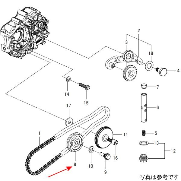 SP武川 カムチェーンガイドローラーコンプリート補修部品のカムチェーンガイドローラーCOMPです。
