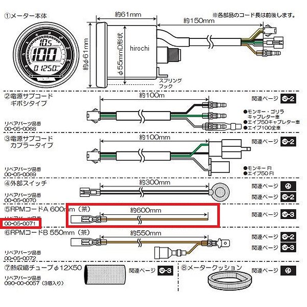 SP武川 RPMコード A 600mmDタイプLCDスピード&タコメーター(品番:05-05-0009)用補修パーツカラー:ブラウン長さ:約600m