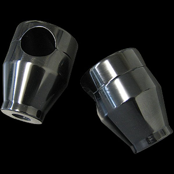 素材:アルミ最大直径:約50mm 最小直径:32mm高さ約50mm(底部からハンドルの中心までです。)トップクランプボルト:5/16-18×1インチ純正ライザーボルトは使えません。スプリンガー・デュース・V-RODには適合しません。また、ファットバー仕様車・トップクランプとライザーが一体式の車両も適合不可です。(07年式以降のFLSTF、XL1200X等)トップクランプボルトの締め付けは均一に行ってください。オーバートルクはライザー本体を破損する恐れがあります。